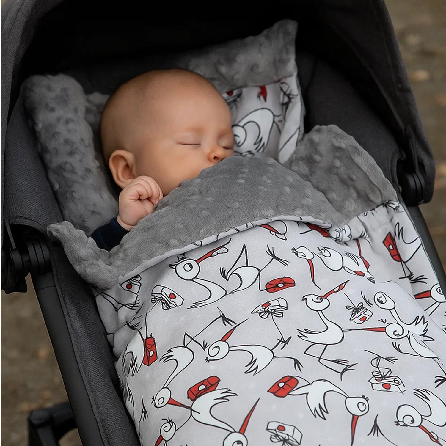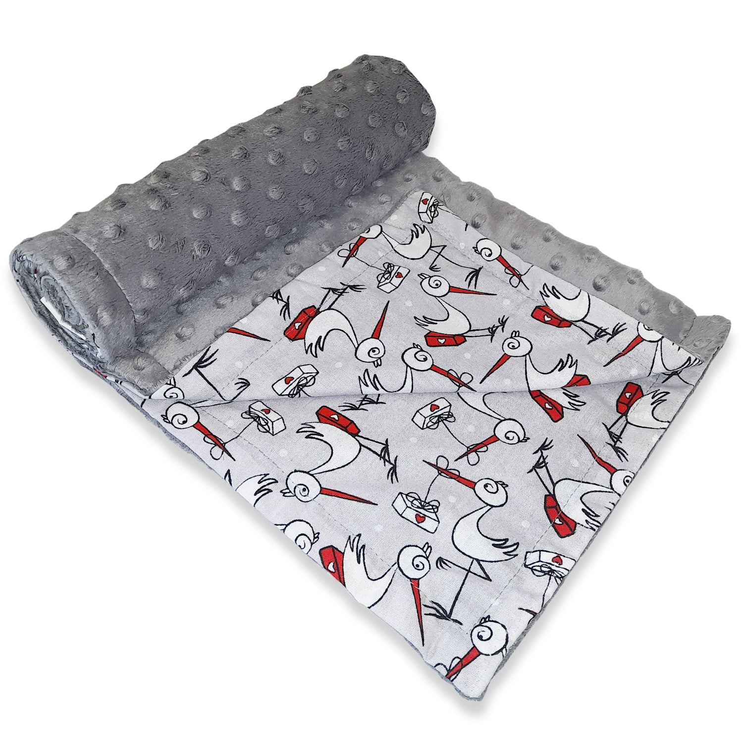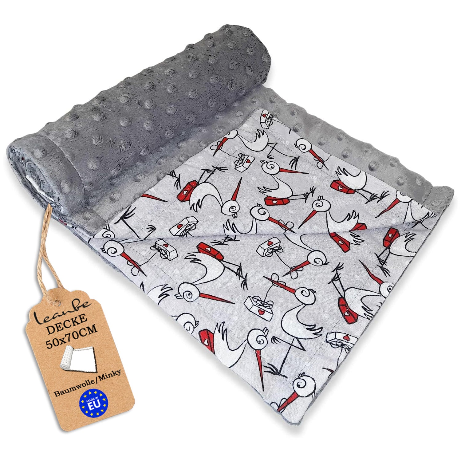 Babydecke 50x70cm doppelseitig Minky/Baumwolle Grau Minky-Störche