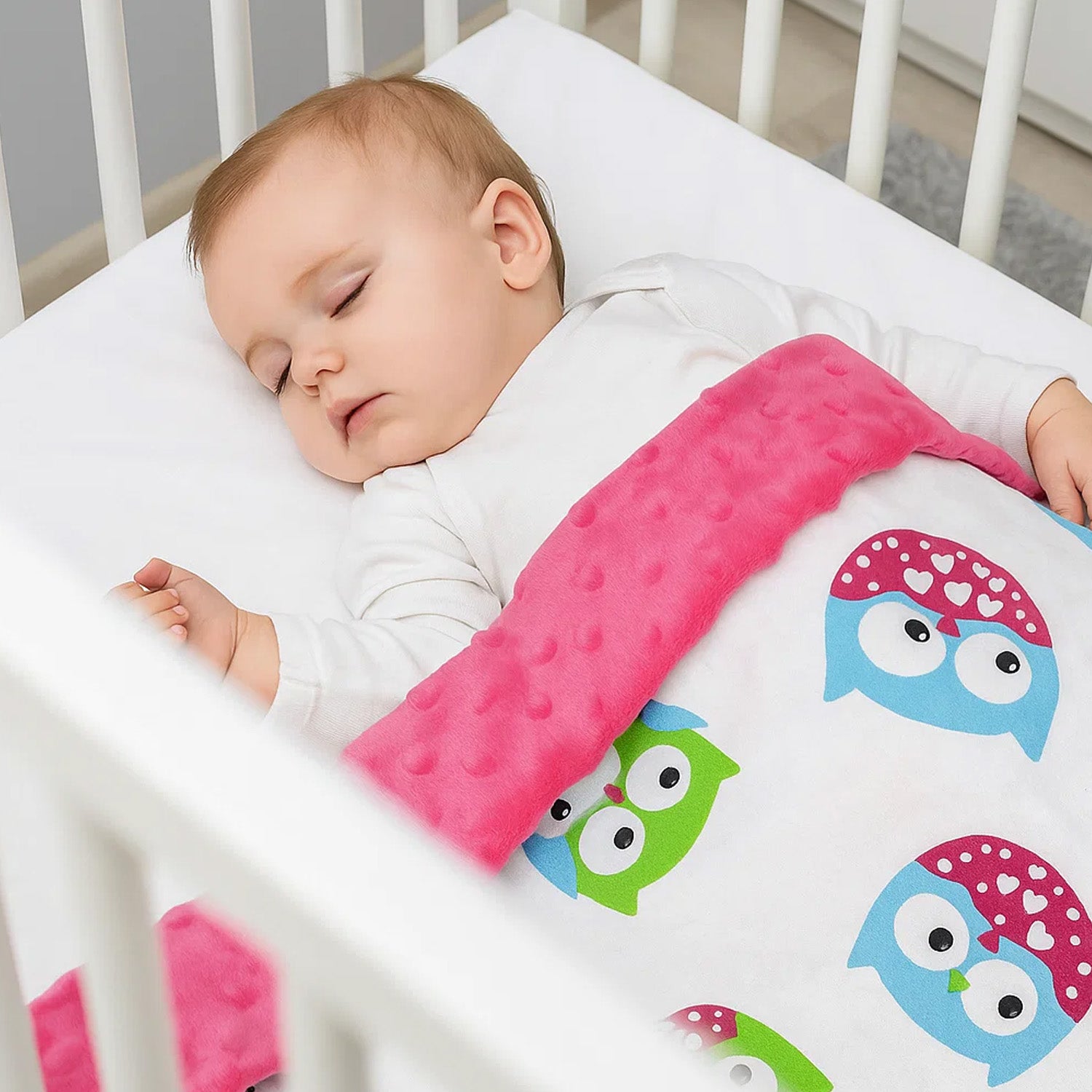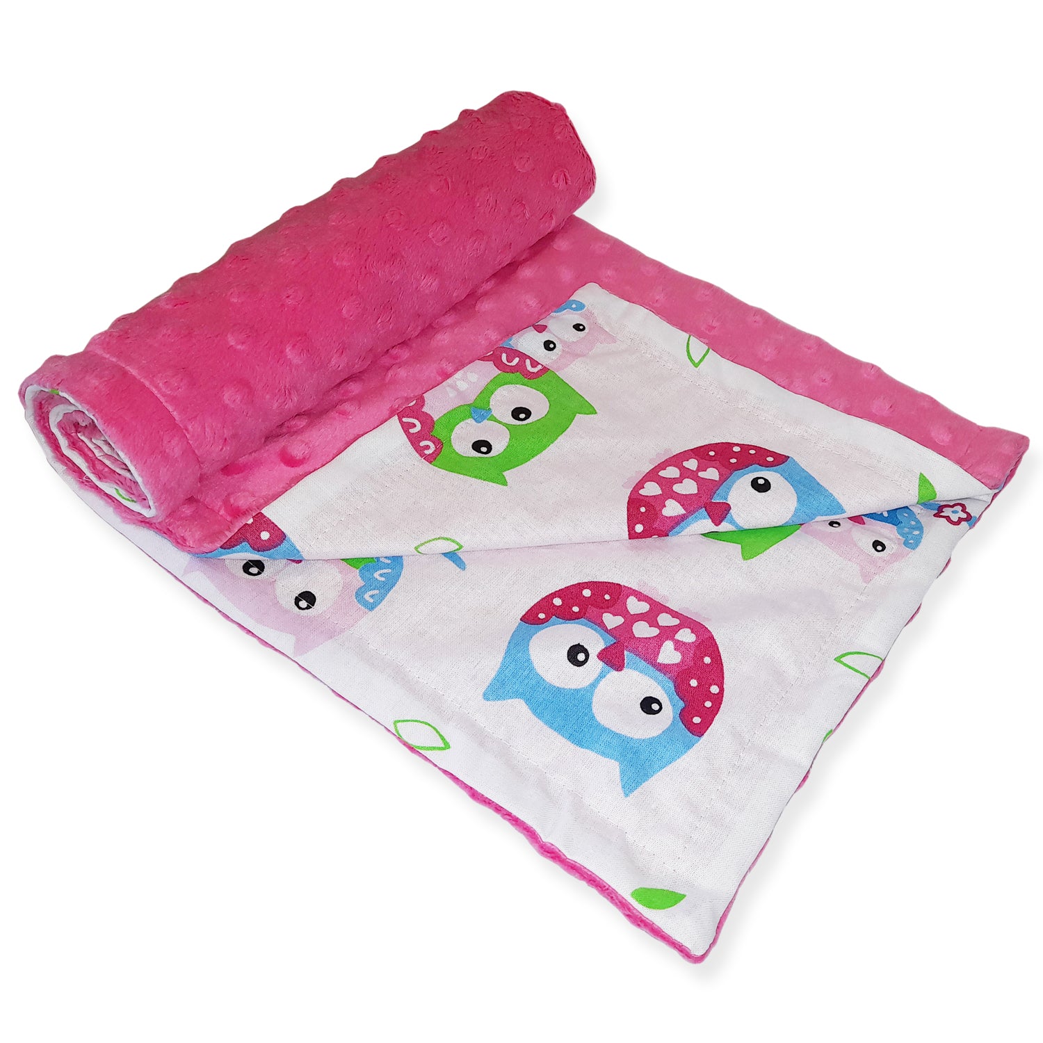 Babydecke 50x70cm doppelseitig Minky/Baumwolle Rosa Minky-Eulen