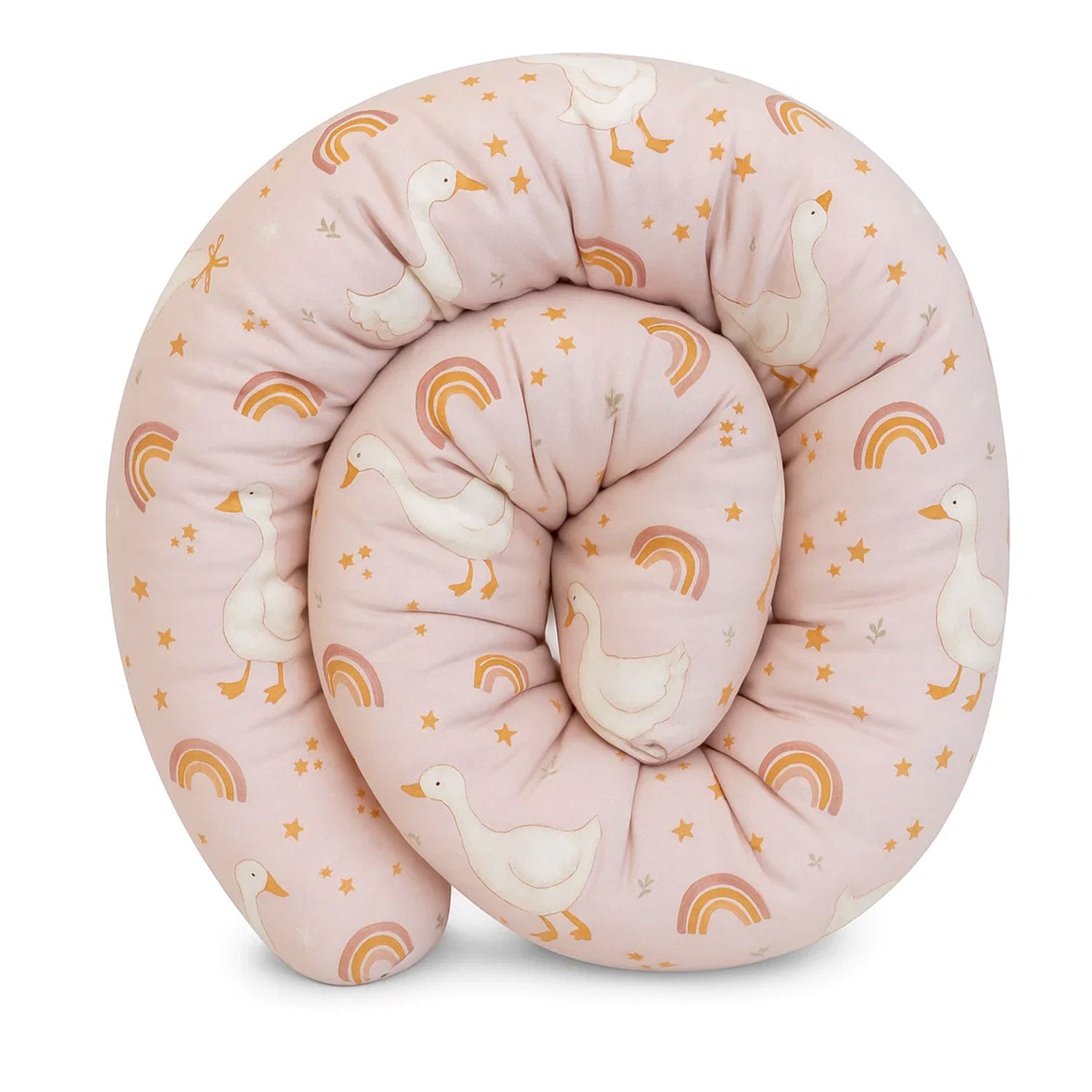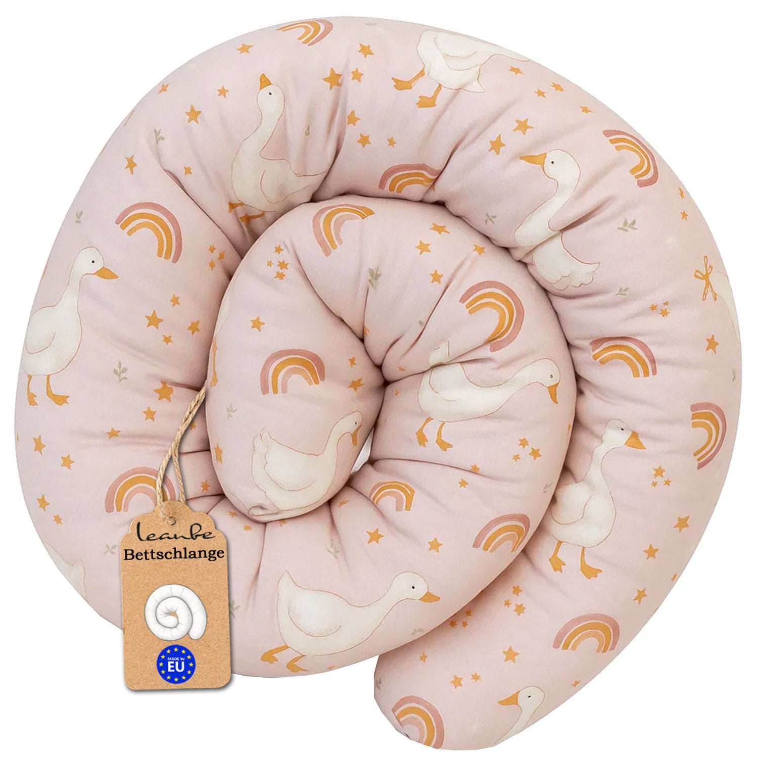 Dank der atmungsaktiven, feuchtigkeitsregulierenden Materialien sorgt die Bettschlange für ein angenehmes Raumklima und verschönert gleichzeitig jedes Kinderzimmer oder Wohnzimmer mit ihrem stilvollen Design. Sie eignet sich zudem perfekt als Geschenk zur Geburt oder Taufe.