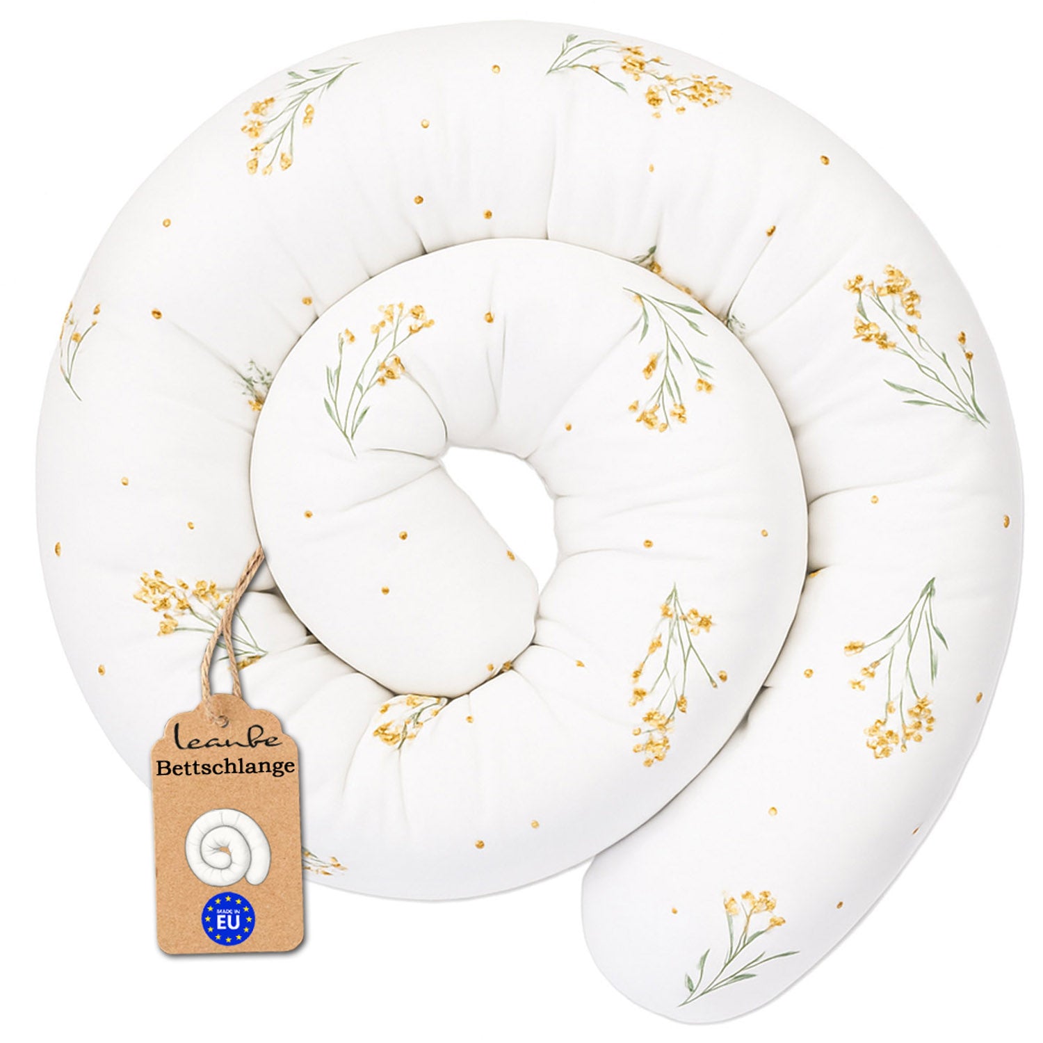 Unsere Bettschlange ist ein echtes Multitalent: Sie schützt Babys und Kinder zuverlässig vor harten Bettkanten, Gitterstäben und kalten Wänden und kann gleichzeitig als Stillkissen, Kuschelrolle oder Spielunterlage verwendet werden. Dank hochwertiger Materialien und sorgfältiger Verarbeitung verbindet sie Funktionalität mit stilvollem Design – ideal für Kinderzimmer und Wohnzimmer.