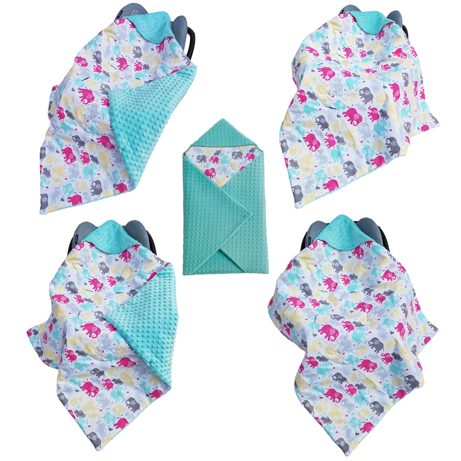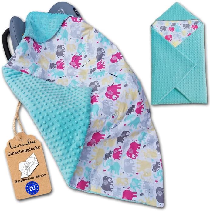 Einschlagdecke Babydecke 86x86 cm – Baumwolle & Minky Tükis / Elefanten