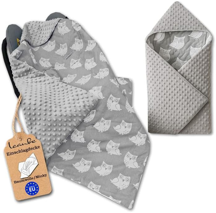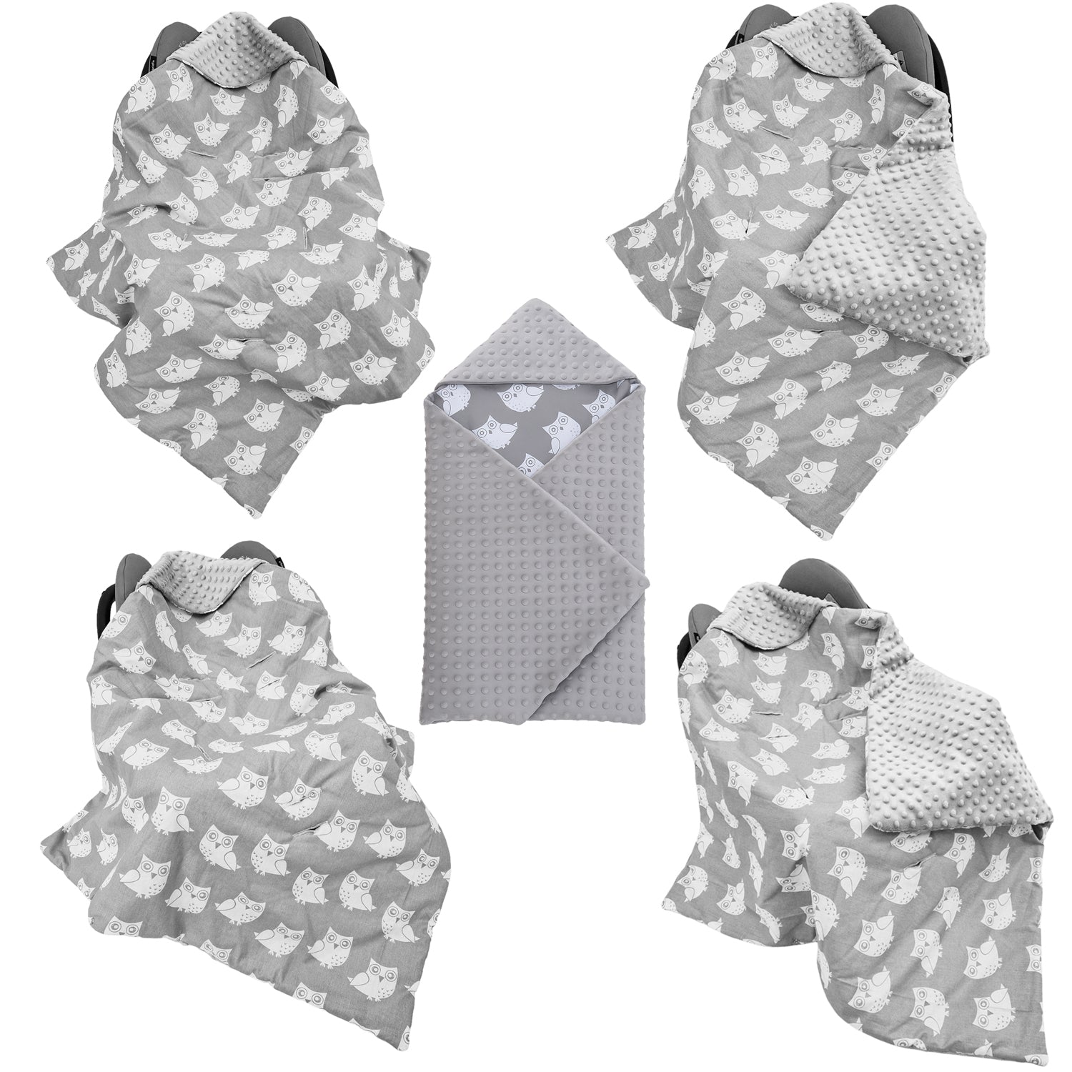 Einschlagdecke Babydecke 86x86 cm – Baumwolle & Minky Grau / Eulen