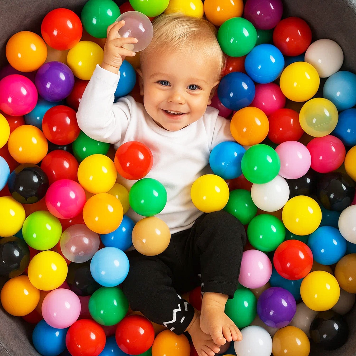 Die Plastikbälle für Bällebad mit einem Durchmesser von 7 cm sorgen für endlosen Spielspaß und fördern gleichzeitig die kognitive sowie motorische Entwicklung von Kindern. Die Farbe kann aus 15 verfügbaren Varianten ausgewählt werden, sodass sich die Bälle perfekt an jedes Kinderzimmer oder Bällebad anpassen lassen. Die Bälle sind robust, langlebig und färben nicht ab – ideal für drinnen und draußen, ob im Kinderzelt, Planschbecken oder Garten. Auch als Geschenk eine tolle Idee!